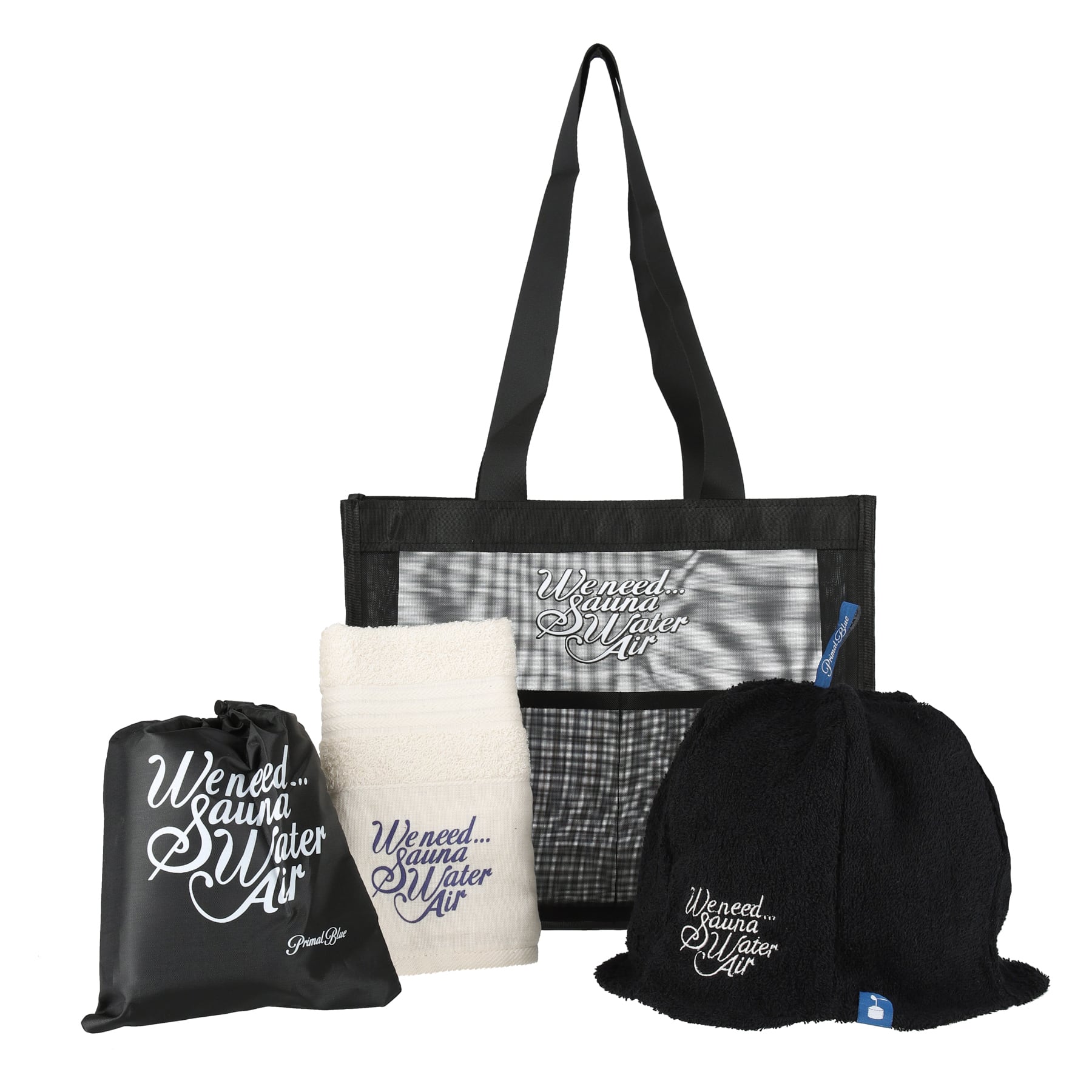 PrimalBlue サウナセット サウナハット サウナマット フェイスタオル メッシュトートバッグ sauna サウナー ジム 持ち運びに便利 入門セット キャンプ 初心者セット (パイル生地 ブラック)