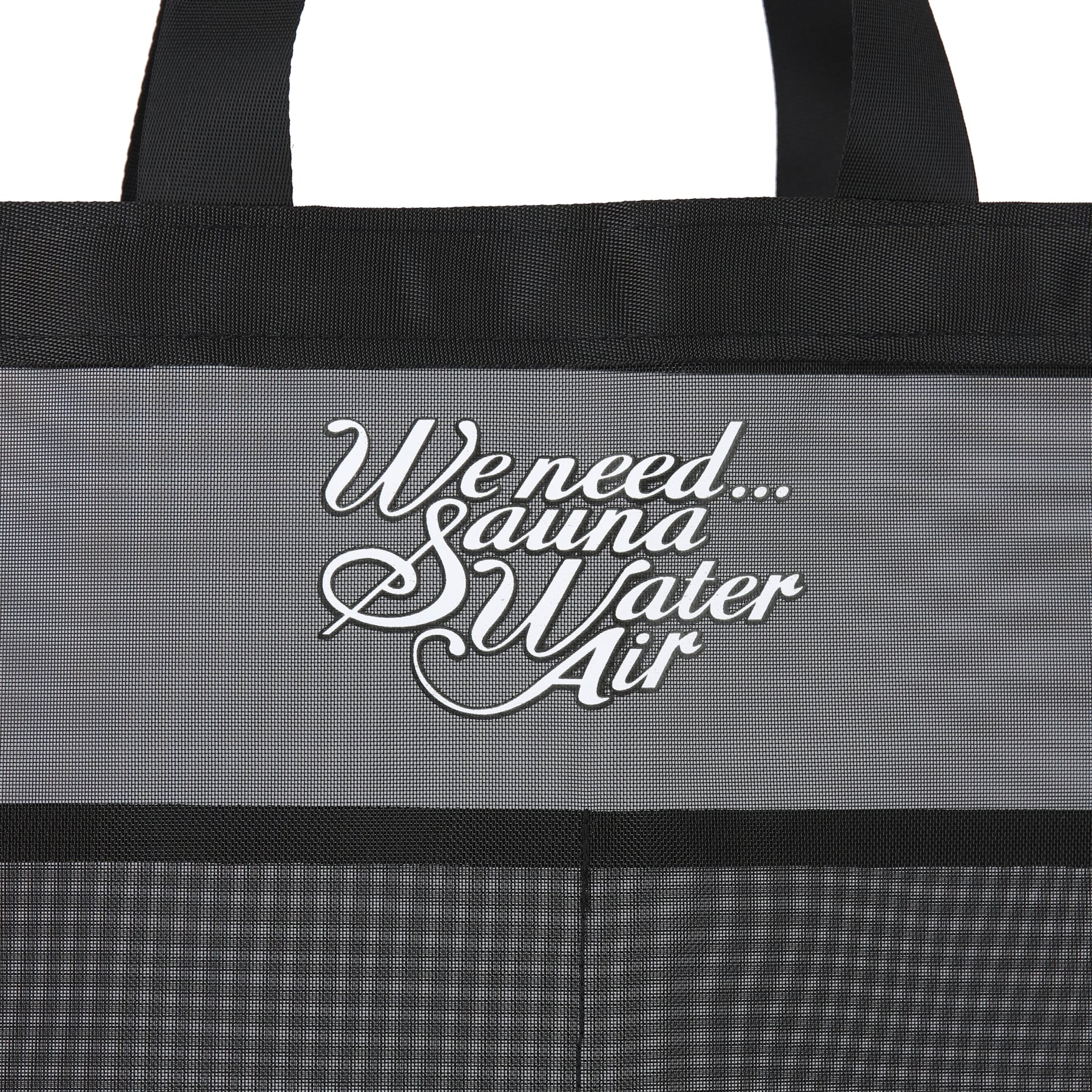 サウナハットにサウナマット、泉州タオルの3点はもちろん、マイシャンプーや石鹸などを入れても十分な大きさのメッシュトートバッグです。