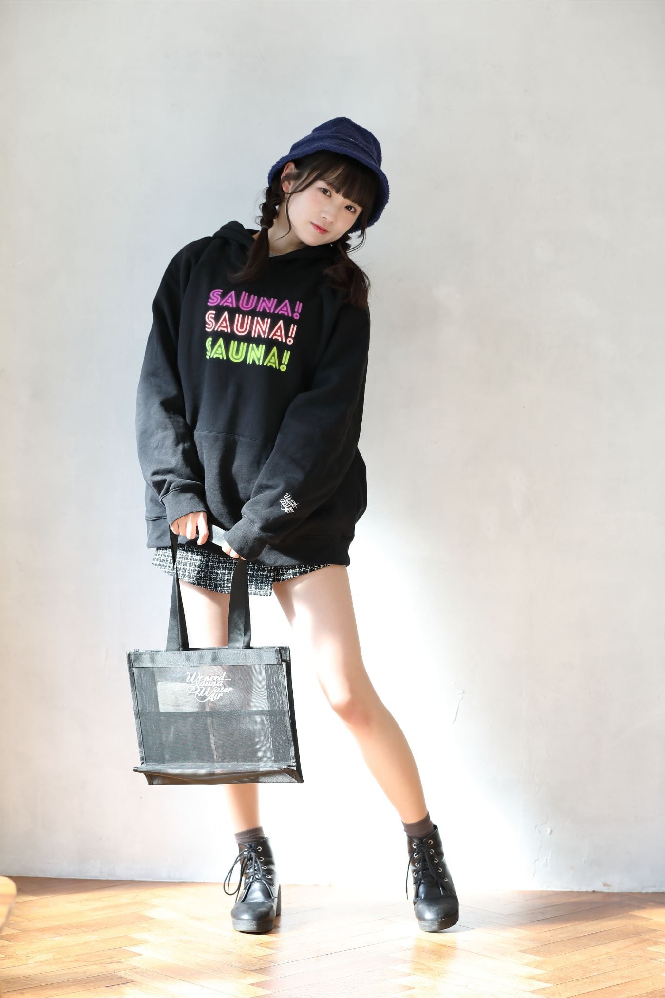 サウナハットにサウナマット、泉州タオルの3点はもちろん、マイシャンプーや石鹸などを入れても十分な大きさのメッシュトートバッグです。