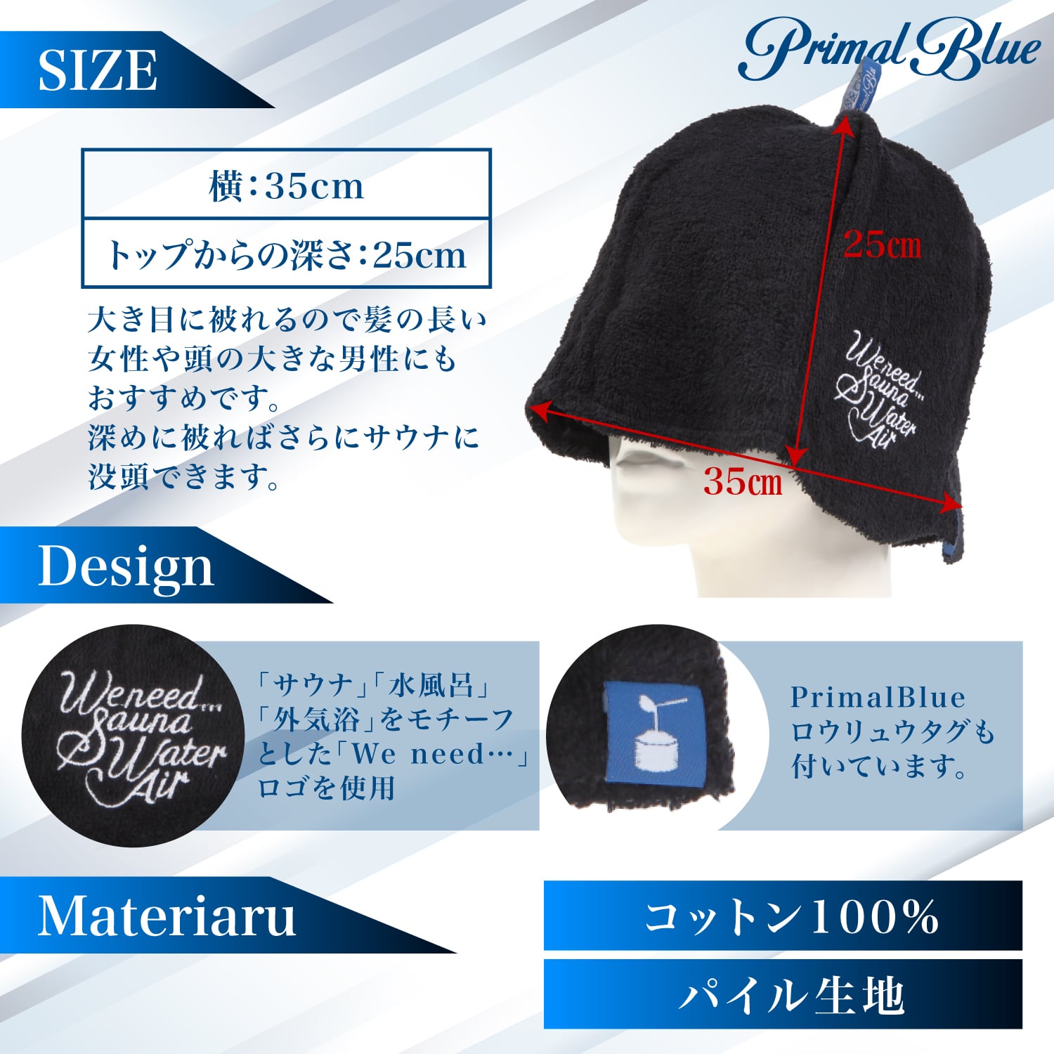 ・PrimalBlueサウナハットパイル生地(ブラック)