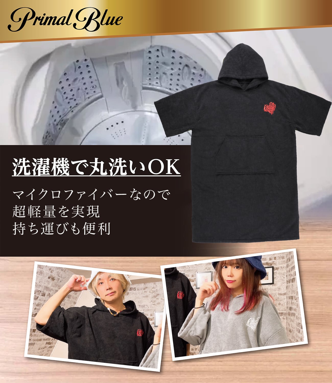 コットン製に比べ軽くて乾きやすいサウナポンチョとなっております。